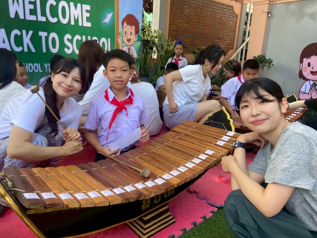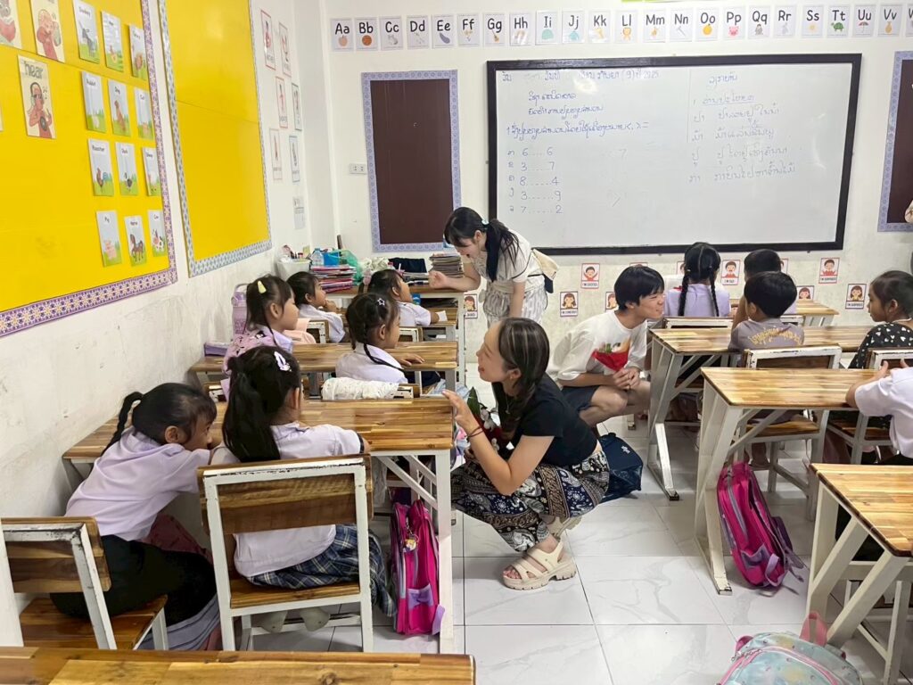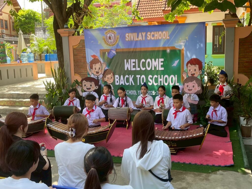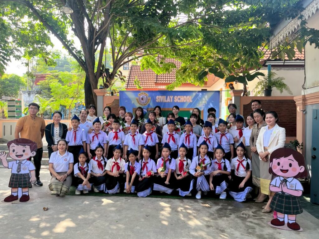 Beyond economics and the environment, students also learned about the education system in Luang Prabang by visiting Civilize Primary School, a private school where children from around the city can study not only the standard curriculum taught in Lao, but also English and Chinese language class. We also carried out activities with the students, sharing cultures by teaching them how to make onigiri and perform Japanese dances, and in return watching their performance of traditional Lao musical instruments.