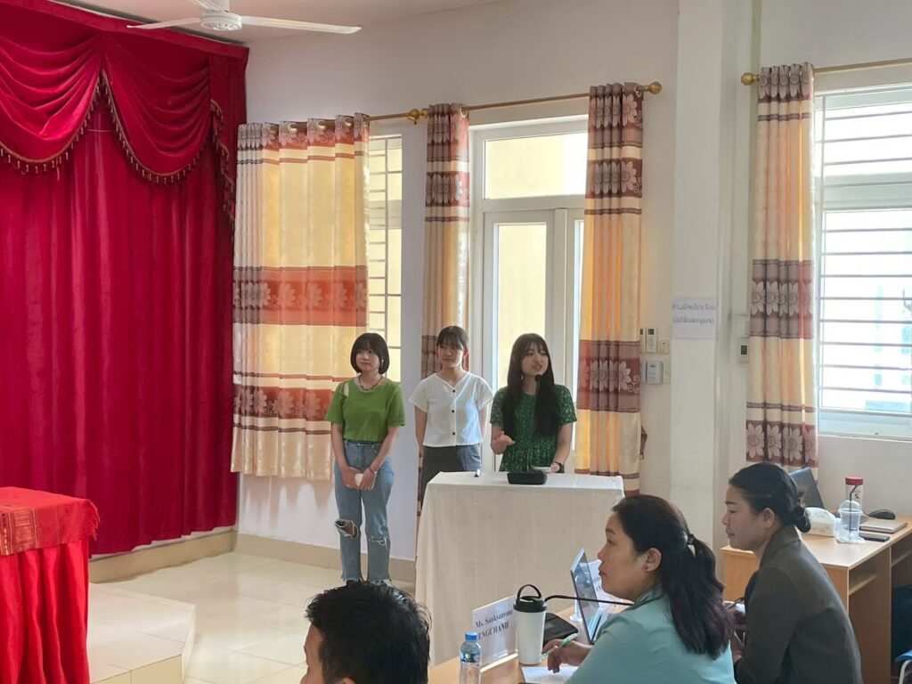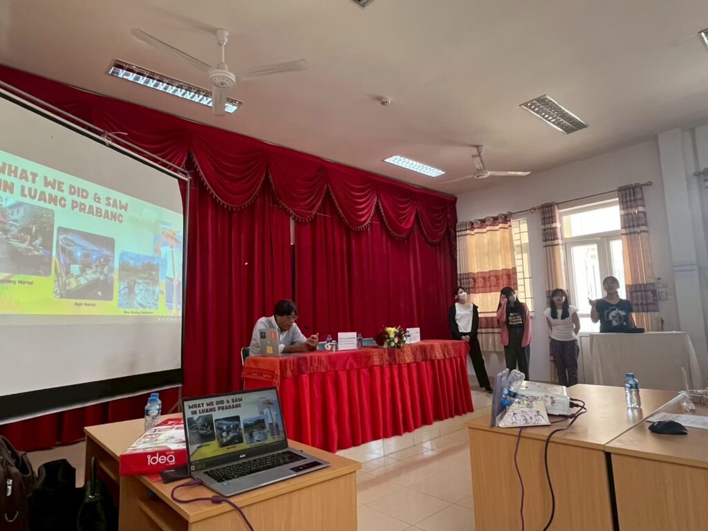 After this long journey, students had a free day to explore Luang Prabang on their own. During this time, they also prepared their group presentations based on their assigned themes, such as education, agriculture, or the environment in Laos. They delivered their presentations the following day to Professor Hirosato, Professor Champa, and subject experts from Souphanouvong University. The feedback they received from professors and peers further enriched their learning experience.